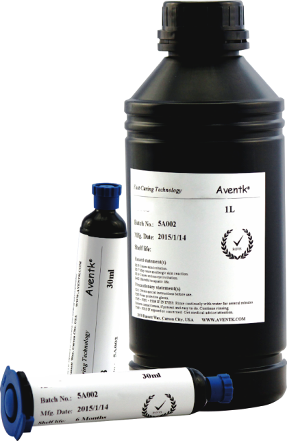 • AVENTK 32001F 為可見(jiàn)光快速固化膠黏劑,可進(jìn)行低溫固化。對PC,PVC 有極佳的粘接力,適用于呼吸面罩及導管粘接。在365nm 黑燈下有藍色熒光效果,便于檢測。AVENTK 配合led固化設備效果更好