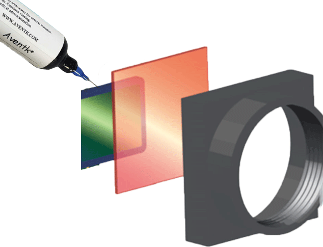 AVENTK針對鏡座+IR濾光片鏡座+PCB的生產(chǎn)需求,推出了多款攝像頭模組uv膠。