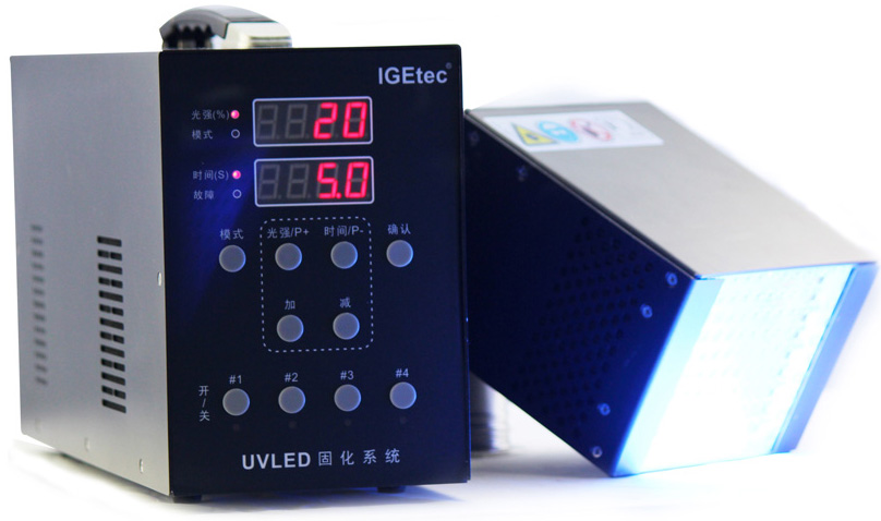 3 、壓緊被粘工件,使用合適波長(cháng)(通常為365-400nm)及能量的UVLED固化設備進(jìn)行照射固化
